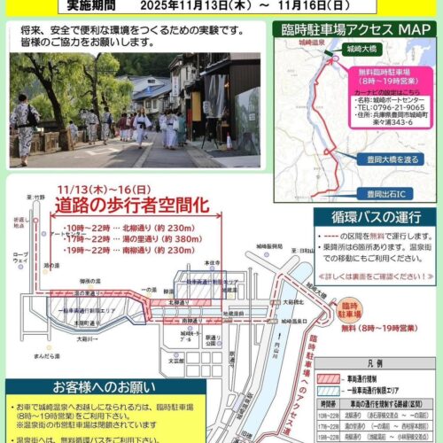 城崎温泉街での車両乗り入れ制限について (実施期間:2025年11月13~16日...